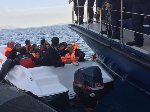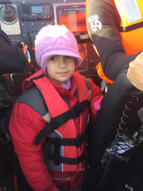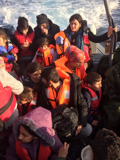 "Gezin uit Aleppo net aangekomen op Lesbos. Op de vlucht voor bombardementen van president Assad."